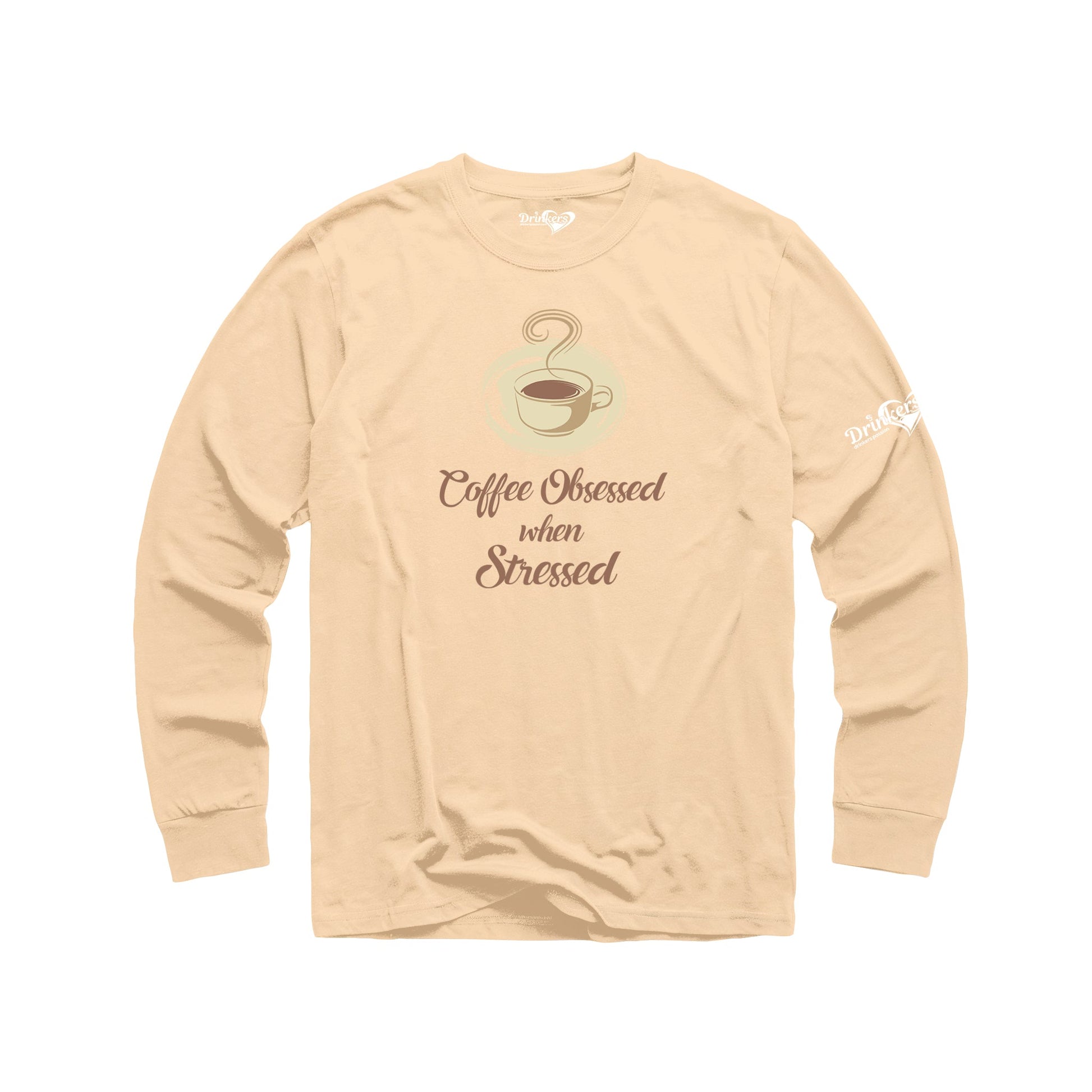 Conquer stress one sip at a time with this fun t-shirt featuring the phrase: 'Coffee Obsessed When Stressed.' Imagine yourself wrapped in the luxurious softness of 100% premium cotton, a steaming cup of your favorite brew in hand, as you take on the day with caffeine-fueled confidence. Perfect for coffee lovers who find comfort in their cup, this tee also makes a great gift for anyone who turns to coffee when life gets hectic!